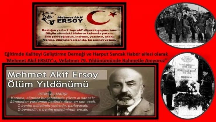Eğitimde Kaliteyi Geliştirme Derneği ve Harput Sancak Haber ailesi olarak 'İstiklal Marşımızın şairi Mehmet Akif ERSOY'u, Vefatının 79. Yıldönümünde Rahmetle Anıyoruz''