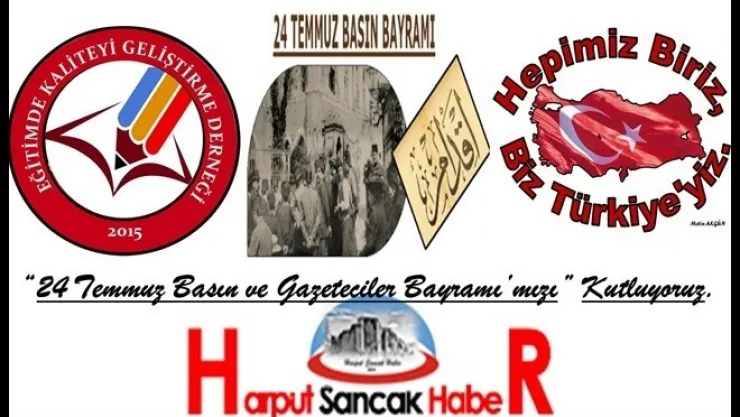 Osmanlı Devleti’nde 2. Meşrutiyet’in ilanından sonra, 24 Temmuz 1908 tarihinde ilk defa gazetelerin sansür memurlarına kontrol ettirilmeden yayınlandığı günün mana derinliğine atfen kutlanan tüm basın camiası çalışanlarının “24 Temmuz Basın ve Gazeteciler Bayramı”nı Eğitimde Kaliteyi Geliştirme Derneği, Harput Sancak Haber Ailesi olarak, kutluyor, kutsal saydıkları görevlerinin başında vefat eden basın mensuplarımıza ise Allah’tan rahmet diliyoruz.