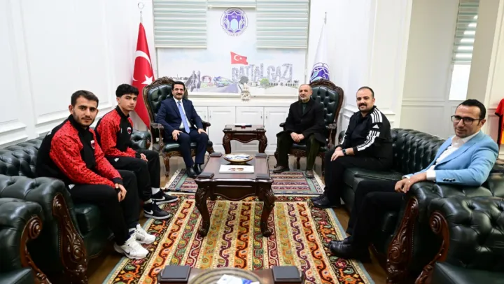Battalgazi Belediyespor bünyesinde mücadele eden ve elde ettikleri başarılar sonucunda A Milli Futsal Takımı'na seçilen Salih Öndüç ile U19 Futsal Milli Takımı'na seçilen Yusuf Efe Ataş, Kulüp Başkanı Orhan Barman ve Futsal Takımı Antrenörü Burak Dönmez ile birlikte Battalgazi Belediye Başkanı Bayram Taşkın'ı makamında ziyaret etti. Belediye binasında gerçekleşen ziyarette, kulübün son dönemde futsal başta olmak üzere farklı branşlarda elde ettiği başarılar, altyapı çalışmaları ve genç sporcuların milli takımlara kazandırılması süreci ele alındı.