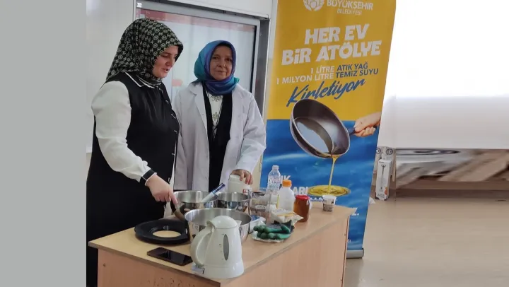 Büyükşehir Belediyesi Çevre Koruma ve Kontrol Dairesi Başkanlığı ekipleri tarafından uygulanan projede Şehit Fevzi Mahallesi'nde ikamet eden vatandaşlara verilen eğitimde bitkisel atık yağların geri dönüşümü anlatılarak, uygulama aşamaları gösterildi.