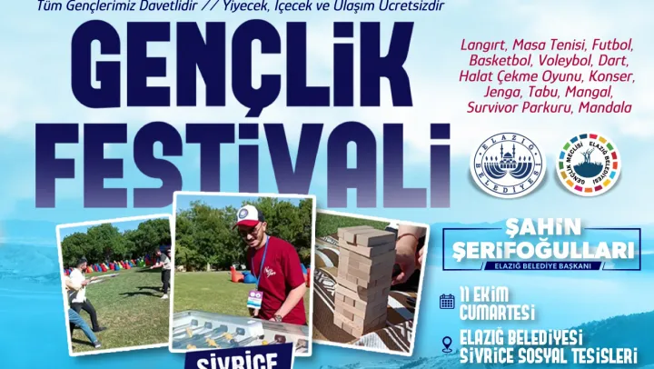 Bu kapsamda Elazığ Belediyesi Gençlik Meclisi tarafından, Gençlik Festivali düzenlenecek. 11 Ekim Cumartesi günü Sivrice Elazığ Belediyesi Sosyal Tesisleri'nde Elazığlı gençlerin doğayla iç içe, eğlence dolu bir gün yaşayacağı etkinlikte; langırt, masa tenisi, futbol, basketbol, voleybol, dart, halat çekme oyunu, survivor parkuru, mandala atölyesi, tabu ve jenga gibi birçok aktivite yer alacak. Tamamen ücretsiz olacak organizasyonda ayrıca gün boyunca konserler ve mangal etkinliği de gerçekleştirilecek.