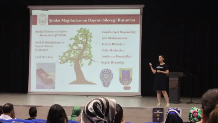 Uzman Beyza Kanca tarafından verilen seminerde katılımcılara, aile içi şiddetin psikolojik ve sosyal boyutları, erken yaşta evliliğin birey ve toplum üzerindeki olumsuz etkileri ile bu konularda izlenmesi gereken hukuki süreçler ele alındı. Programda, öte yandan kadına yönelik şiddetle mücadelede toplumsal bilincin artırılmasına yönelik çalışmaların kararlılıkla sürdürülmesi gerektiği de ifade edildi.