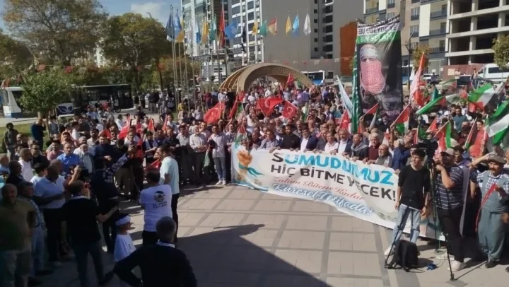 15 Temmuz Demokrasi Meydanı'nda bir araya gelen yüzlerce kişi, tekbir ve sloganlarla Gazi Caddesi üzerinden Cumhuriyet Meydanı'na yürüdü. Cumhuriyet Meydanı'nda bir araya gelen vatandaşlar dualar ederek İsrail'in saldırılarını protesto etti.