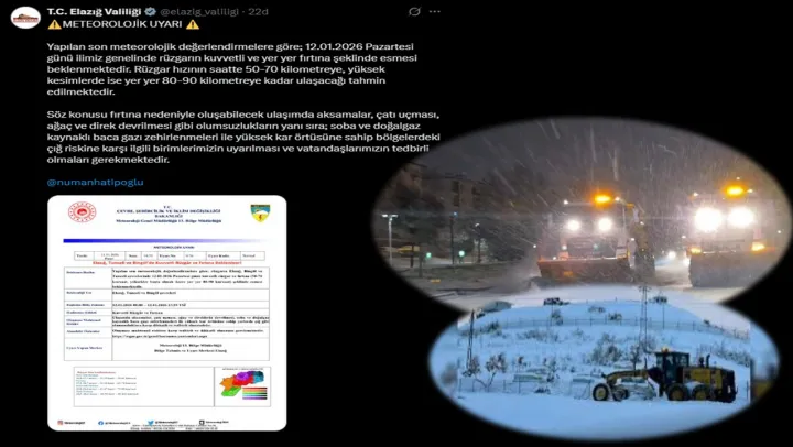 Elazığ Valiliği'nden Kuvvetli Yağış ve Kar Uyarısı