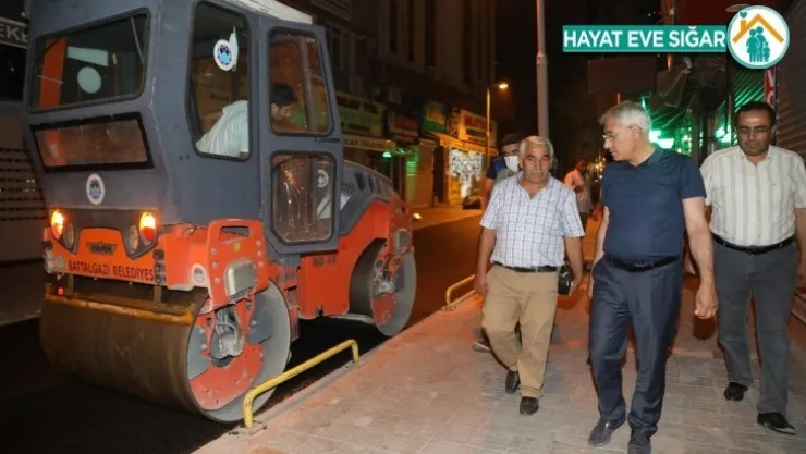 Mesai mefhumu gözetmeksizin ilçe genelindeki çalışmalarını gece gündüz yürüten Battalgazi Belediyesi’ne bağlı ekipler, PTT yanından Şemsiye Sokağa çıkan Tenzile Sokak’ta yenileme çalışmaları başlattı. Vatandaşların rahatsız ve esnafların mağdur olmaması için çalışmalarını gece yürüten ekipler, sokaktaki deforme olmuş kilit taşları sökerek, sıcak asfalt serimi gerçekleştirdi. Sabahın ilk ışıklarında sokağı kullanılır hale getiren ekiplerin çalışmalarını yerinde inceleyen Battalgazi Belediye Başkanı Osman Güder, ekiplere teşekkürlerini iletti.