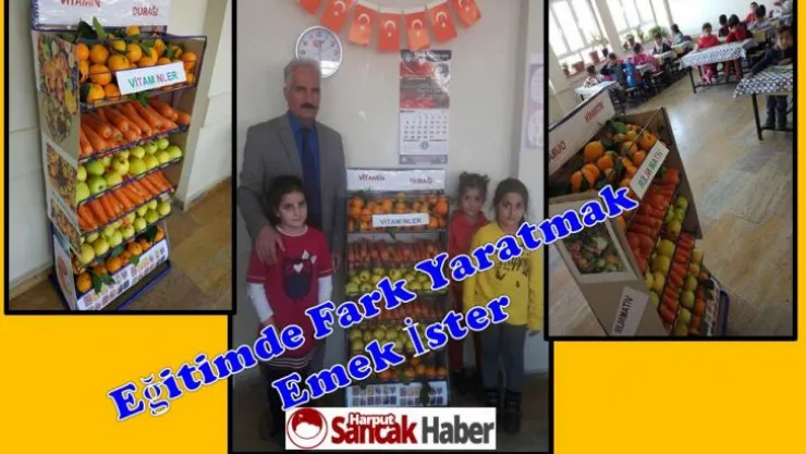 “Ruhun ve zihnin gıdası kitap, bedenin gıdası meyvedir” sloganıyla başlayan projede dar gelirli ailelerin çocuklarının iyi beslenemediğinden yola çıkarak ve çocuklara meyve yeme alışkanlığı kazandırmak amacıyla Avukat İbrahim Gök İlkokulu 2/B sınıfı öğrencileri, öğretmenleri Kamil SEÇGİN öncülüğünde sınıfta bir meyve standı kurdu.
