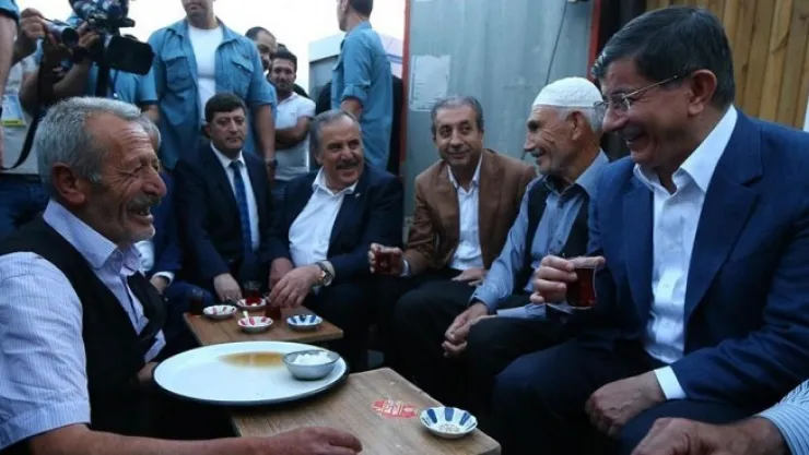 Başbakan Davutoğlu, cami önündeki bir çay ocağı işletmecisinin daveti üzerine de burada vatandaşlarla birlikte çay içti.