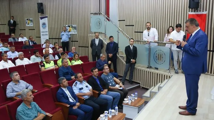 Battalgazi Belediye Başkanı Selahattin Gürkan, okul servis şoförlerine yönelik düzenlenen toplantıya katıldı.