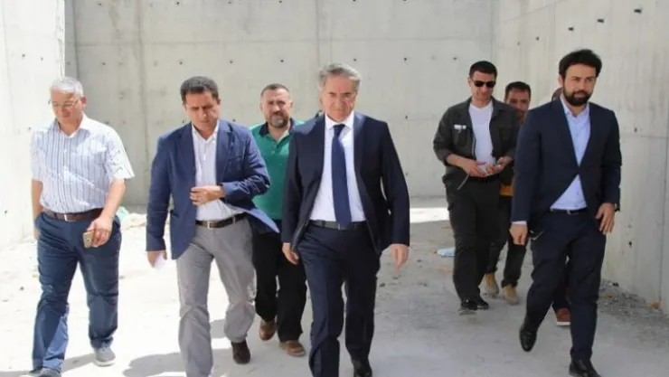 Elazığ Belediye Başkanı Mücahit Yanılmaz, Hamzabey Barajı'nın, Karşıyaka Mahallesi'nde yapımı devam eden su deposu inşaatında bir takım incelemelerde bulundu.