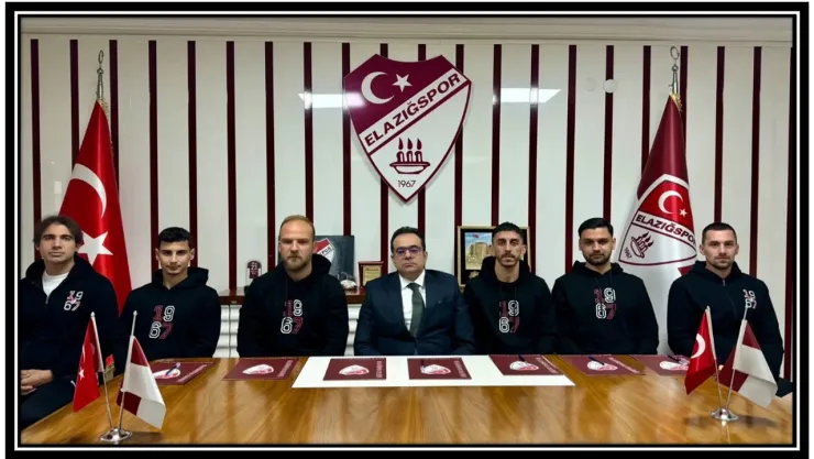 Elazığspor, 2025-2026 futbol sezonu ikinci transfer çalışmalarını sürdüren takımımız, tescil döneminde şu ana kadar kadrosuna Sakıb Aytaç, Çağlayan Menderes, Sertaç Çam, Ali Altınöz, Hakan Canbazoğlu ve Burak Altıparmak’ı kattı. Bordo-beyazlılar, bu altı futbolcu için Elazığspor tesislerinde imza töreni gerçekleştirdi. Törene Elazığspor As Başkanı Ahmet Feti Yılmaz da katıldı.