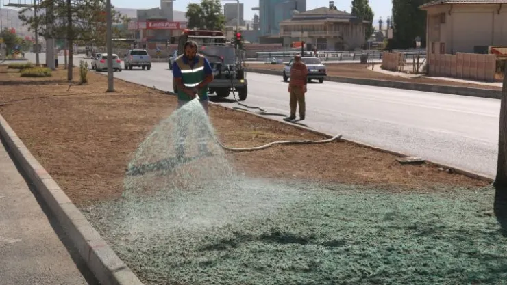 Elazığ Belediyesi, son teknoloji sistem olan hydroseeding yöntemi ile çimlendirme çalışmalarına devam ediyor.