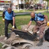 Ekipler tarafından yürütülen çalışmalarla ızgaralar kaldırılarak su geçişini engelleyen çöpler, kuru ağaç dalları, yaprak ve toprak gibi birikintiler titizlikle temizleniyor.