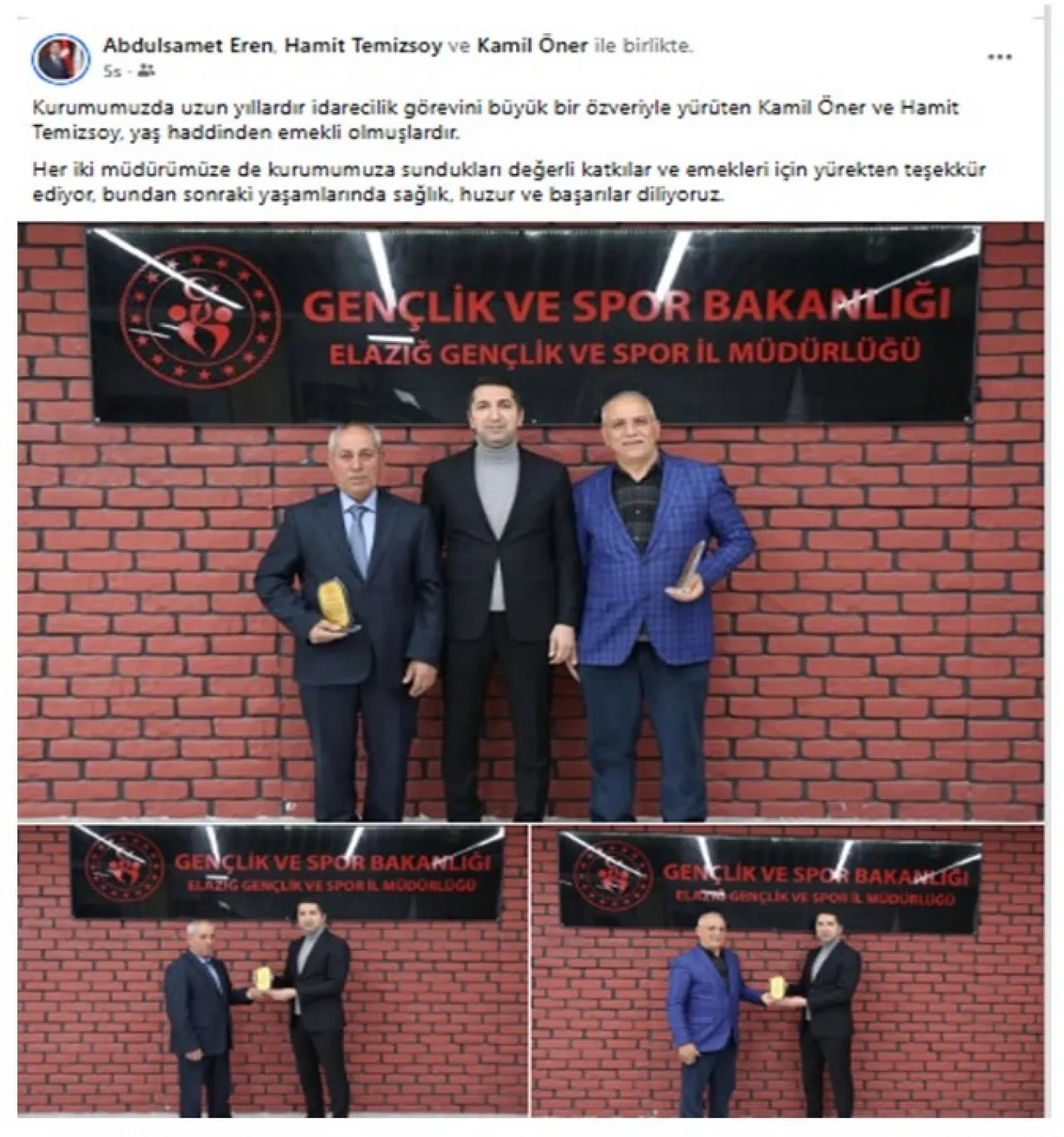 Elazığ Gençlik ve Spor İl Müdürü Abdulsamet EREN sosyal medya paylaşımında;