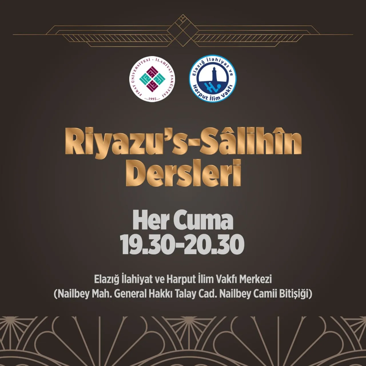 Elazığ İlahiyat ve Harput İlim Vakfı organizasyonuyla Riyâzü’s-Sâlihîn’den seçme âyet ve hadislerin yer alacağı bir etkinliğe imza atılacak.