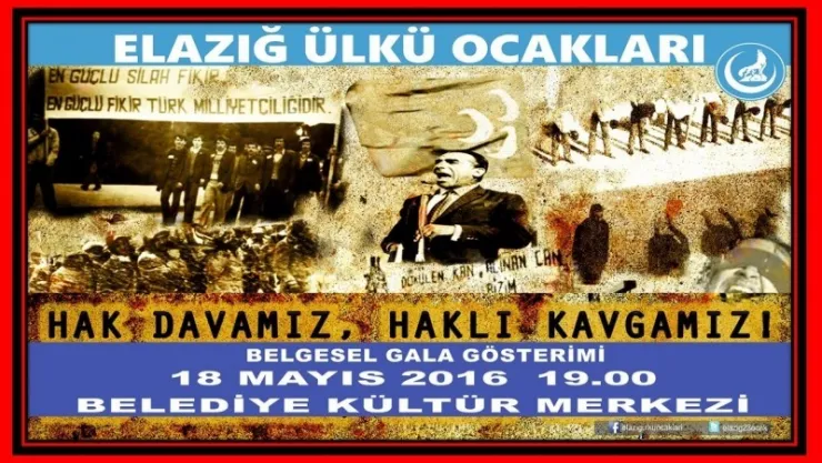 ELAZIĞ Ülkü Ocaklarından "Hak Davamız, Haklı Davamız" konulu Belgesel Film Galasına açık davet yapıldı.