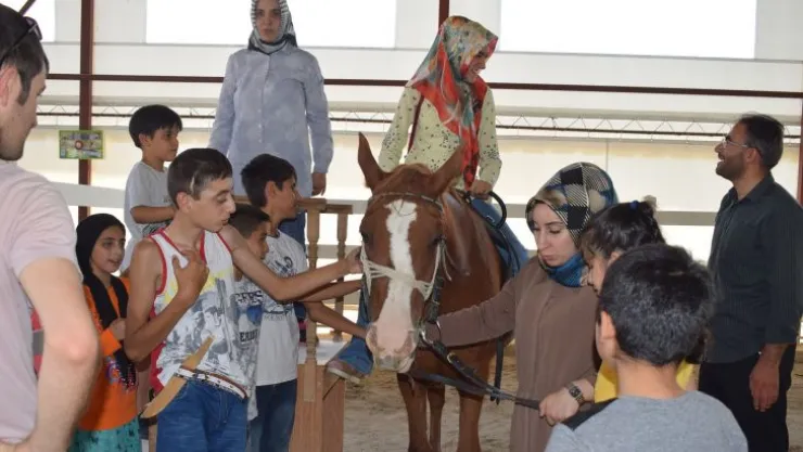 Görme engelli çocuklar piknik programının ardından atlara binerek, keyifli bir gün geçirmenin mutluluğunu yaşadılar.