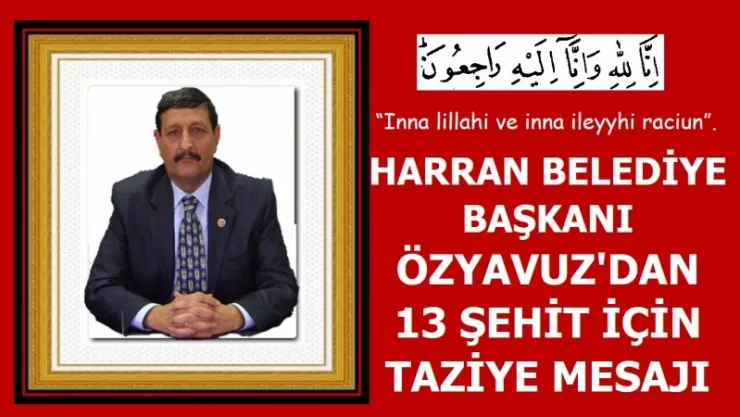 - HARRAN BELEDİYE BAŞKANI ÖZYAVUZ'DAN 13 ŞEHİT İÇİN TAZİYE MESAJI