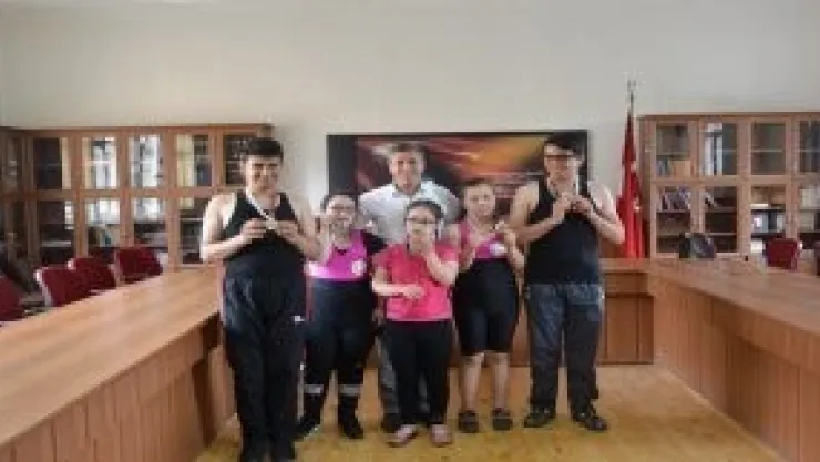 Özel Sporcular Türkiye Jimnastik Şampiyonasında beş altın, iki bronz madalya ile dönen Sessiz Adımlar Spor Kulübünün şampiyon sporcuları, başarılarını İl Milli Eğitim Müdürü Ali Tatlı ile paylaştılar.
