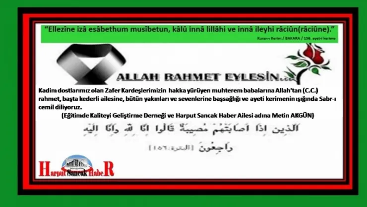 Eğitimde Kaliteyi Geliştirme Derneği ve Harput Sancak Haber Ailesi adına;
