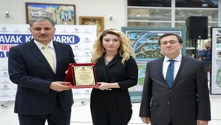 Büyükşehir belediye Başkanı Ahmet Çakır, düzenlenen fikir projesi yarışmasına katkılarından dolayı Güzel Sanatlar Fakültesi Peyzaj Mimarlığı Bölümü Başkanı Doç.Dr. Bülent Yılmaz ile bölüm hocalarına birer plaket verdi.