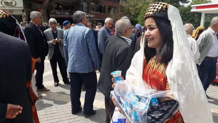 Konuşmaların ardından yöresel giysiler giyen MHP’li kadın kolları üyeleri hakla ayran ikram etti.