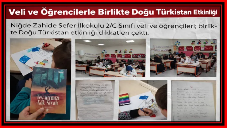 Niğde Zahide Sefer İlkokulu 2/C sınıfı öğretmeni, öğrencileri ve velileriyle birlikte düzenlediği Doğu Türkistan etkinliğiyle örnek bir çalışmaya imza attı. Sınıf ortamında gerçekleştirilen programda öğrenciler hem farkındalık kazandı hem de duygu ve düşüncelerini sanat yoluyla ifade etme fırsatı buldu.