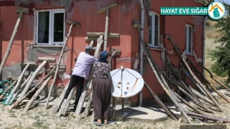 Elazığ'da bir vatandaş, depremde hasar gören evinin yıkılmasını önlemek amacıyla ilginç bir çare buldu.