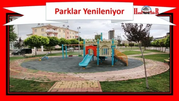 Elazığ Belediyesi kent merkezindeki parklarda zeminden, çocuk oyun grupları ve fitness aletlerine yenileme çalışmalarını sürdürüyor