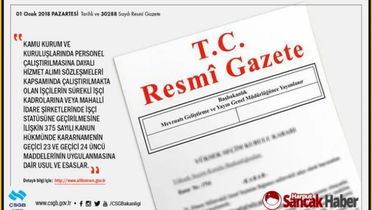 - 'Taşeron Düzenlemesi' Resmi Gazete'de Yayımlandı.