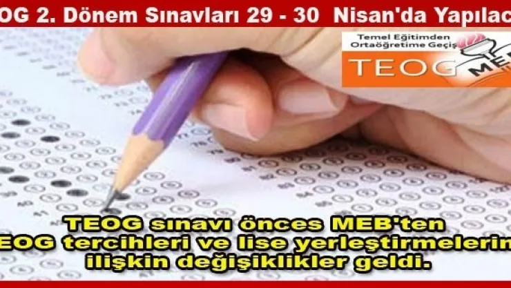 - TEOG 2. Dönem Sınavları 29 - 30 Nisan'da Yapılacak