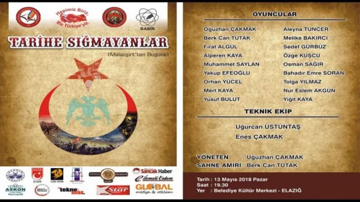 EKG Derneği Elazığ Şehir Tiyatrosu senaryosu da kendilerine ait muhteşem bir oyun olan “TARİHE SIĞMAYANLAR” (Malazgirt’ten Günümüze) ile Sahne alıyor…