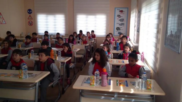 Trafik Eğitim Parkında öğrencilere polis memurları ve Büyükşehir Belediyesi görevlileri tarafından bir yandan trafik kuralları hakkında bilgiler verilirken, diğer yandan da trafik kuralları akülü araçlar ve bisikletler ile uygulamalı olarak gösteriliyor.