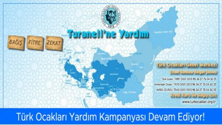 Türk Ocakları Genel Merkezi ve şubelerinin yıllardır yürüttüğü yardım kampanyası, bu yıl da çok daha geniş bir şekilde Turan coğrafyasına yayılarak 'TURANELİ YARDIM KAMPANYASI' olarak devam ediyor.