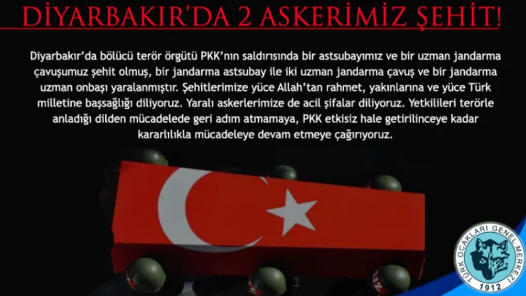 Diyarbakır'da Şehit Olan 2 Askerimize Rahmet Diliyoruz