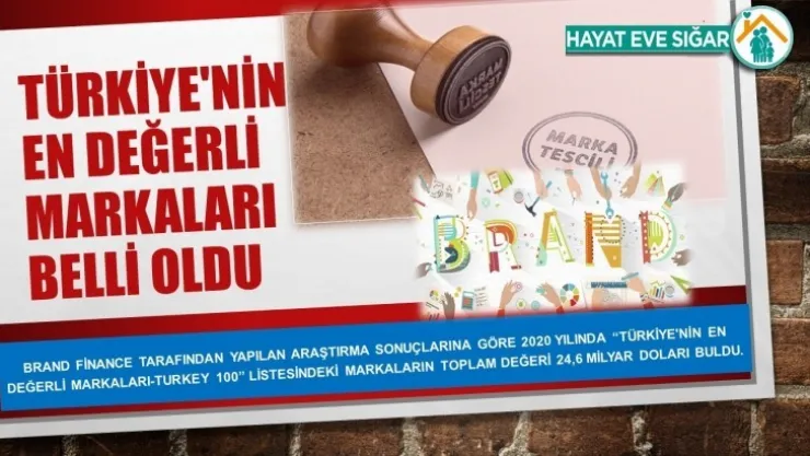 Brand Finance tarafından yapılan araştırma sonuçlarına göre 2020 yılında 'Türkiye'nin En Değerli Markaları-Turkey 100' listesindeki markaların toplam değeri 24,6 milyar doları buldu.