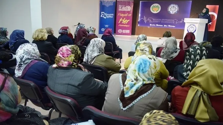 Büyükşehir Kent Konseyi Fethi Gemuhluoğlu Konferans Salonu’nda düzenlenen konferansa Malatya İl Müftülüğü’nden Vaize Yasemin Çatı, Kadın Meclisi Başkanı Saliha Bulut, Kadın Meclisi üyeleri ve gönüllüler katıldı.