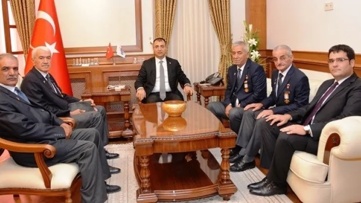 Türkiye Muharip Gaziler Derneği Malatya Şube Başkanı Halit Ziya Öztürk ve dernek üyesi gaziler Vali Toprak'ı makamında ziyaret ettiler