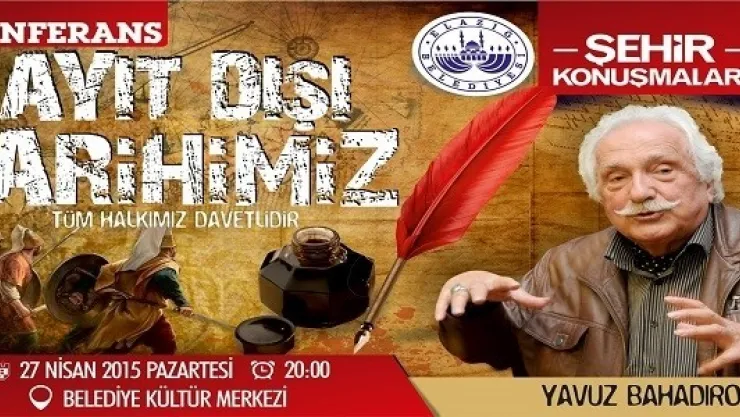 Belediye Kültür Merkezi'nde 27 Nisan 2015 saat 20.00'de gerçekleştirilecek konferansa, tarihe ışık tutan kitaplarıyla bilinen tarihçi-yazar ve gazeteci Yavuz Bahadıroğlu konuşmacı olarak katılacak.